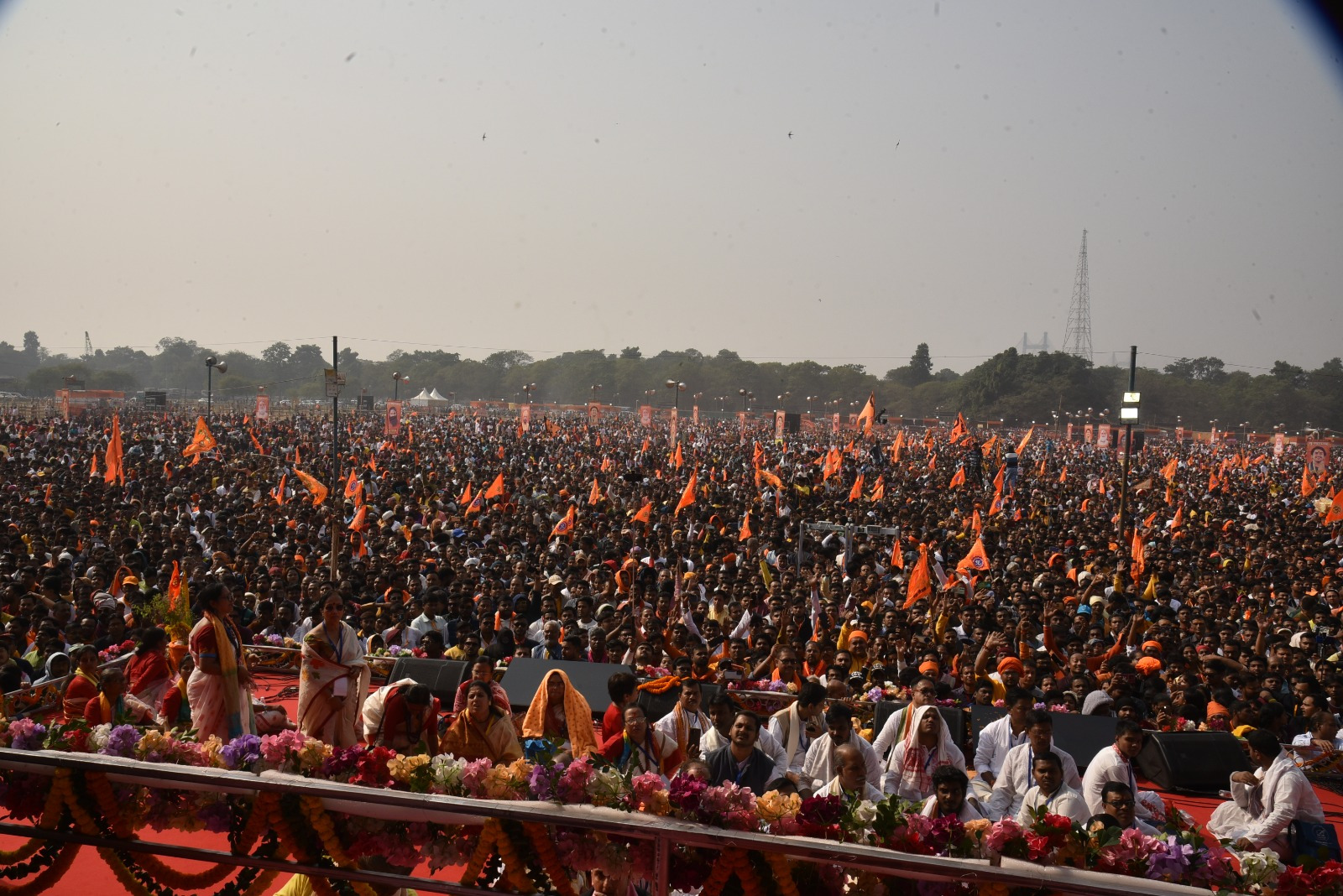 विशाल जनसमूह का अभिवादन किया और अपनी शुभकामनाएँ दीं