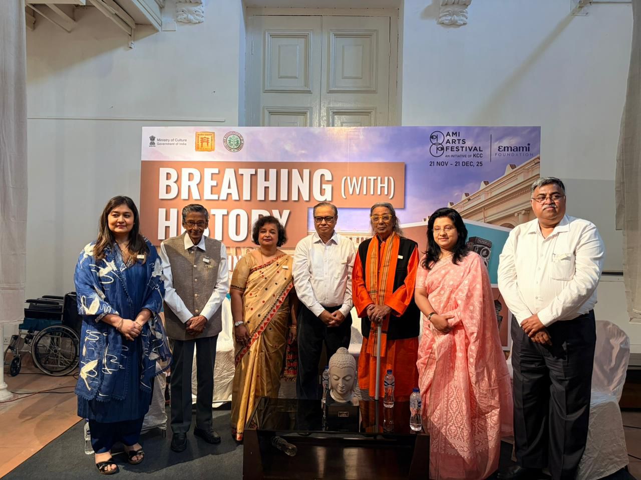 कोलकाता : कोलकाता सेंटर फ़ॉर क्रिएटिविटी (KCC) ने भारतीय संग्रहालय और म्यूज़ियम एसोसिएशन ऑफ़ बंगाल के सहयोग से Breathing (with) History – Celebrating Rural Heritage Stories नामक एक विशिष्ट प्रदर्शनी का गर्वपूर्वक उद्घाटन किया, जो भारत के ग्रामीण सांस्कृतिक परिदृश्यों को नए सिरे से सार्वजनिक ध्यान में लाती है। संस्था द्वारा जारी बयान में यह जानकारी दी गयी है। KCC के AMI आर्ट्स फ़ेस्टिवल 2025 का हिस्सा होने वाली यह प्रदर्शनी 21 से 29 नवंबर 2025 तक भारतीय संग्रहालय में देखने के लिए उपलब्ध होगी, जिसके साथ कार्यशालाएँ और गोलमेज चर्चाएँ जैसी सहगामी गतिविधियाँ भी आयोजित की जाएँगी।